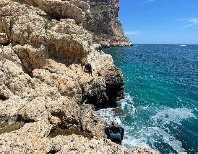 Esta emocionante actividad se desarrolla siguiendo el perfil costero de Cala Moraig, en plena Costa Blanca. A lo largo del recorrido te enfrentarás a acantilados, calas secretas y formaciones rocosas que pondrán a prueba tu equilibrio y valentía. Con ayuda de guías expertos, avanzarás nadando, escalando y saltando al mar, todo con neopreno, casco y medidas de seguridad profesionales.