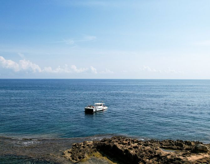 Durante el recorrido, el barco navegará tanto cerca de la costa como en alta mar, permitiéndote disfrutar de diferentes perspectivas de este hermoso destino. También, la excursión incluye una parada para un tranquilo baño en aguas cristalinas, lo que te permitirá relajarte y disfrutar de la belleza natural de la zona. Esta actividad está recomendada para todas las edades, haciendo de ella una experiencia ideal para compartir con amigos y familia.