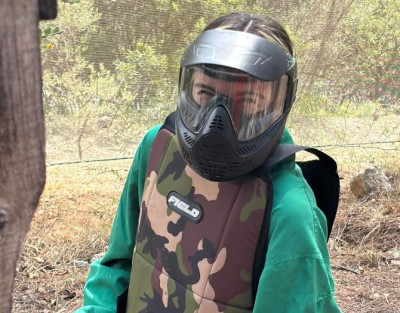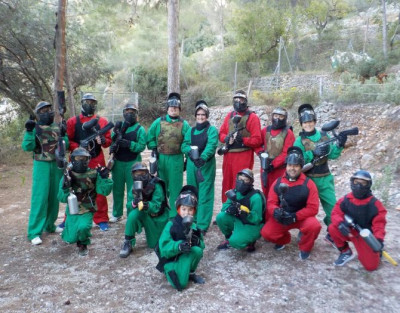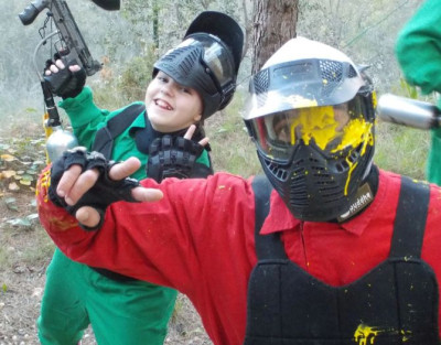 Esta actividad se realiza en un campo al aire libre con obstáculos y zonas boscosas, ideal para partidas emocionantes. Se utiliza material adaptado con marcadoras de calibre 50, de menor impacto, perfectas para edades entre 10 y 15 años (aunque los adultos también pueden participar con este formato si lo desean).