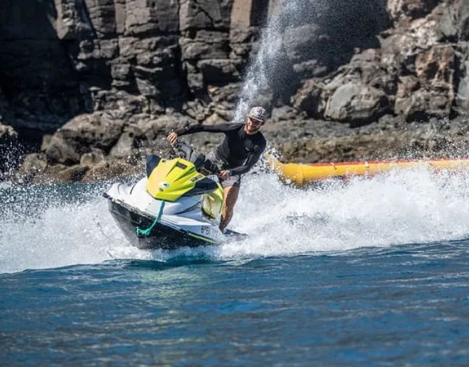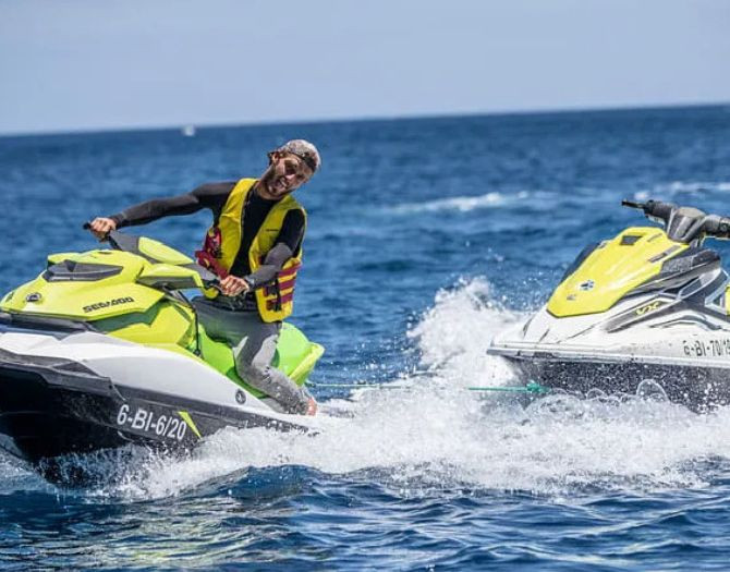 Prepárate para una experiencia inolvidable con nuestro Tour en Moto de Agua por Playa Blanca, Lanzarote. Vive la emoción de conducir tu propia moto de agua mientras exploras la espectacular costa sur de la isla, con dos opciones de duración para que elijas la aventura que mejor se adapta a ti.