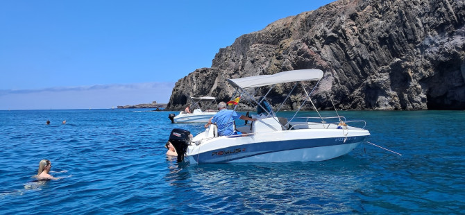 Porque es una forma libre, segura y divertida de conocer la costa de Lanzarote. Tú decides si quieres tomar el timón o simplemente relajarte a bordo. Fondea frente a las Playas de Papagayo, báñate en aguas cristalinas o tómate algo mientras admiras las vistas desde el mar. Es una experiencia exclusiva, accesible y completamente a tu ritmo.