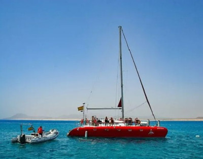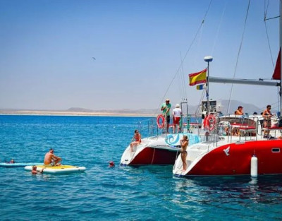 Vive el mar como nunca antes con nuestra Excursión en Catamarán a la Isla de Lobos con Comida. Una experiencia completa que combina navegación, baño en calas cristalinas, actividades acuáticas y un delicioso almuerzo a bordo. Además, tendrás la oportunidad de desembarcar y recorrer uno de los parajes naturales más bellos de Fuerteventura.