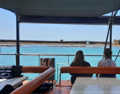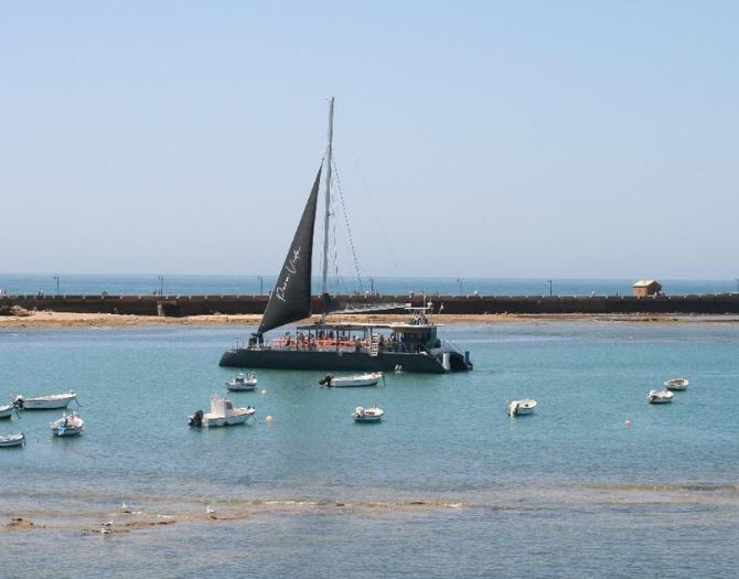 Paseo de 90 minutos de duración para navegar por la bahía de Cadiz amenizado con musica de saxofonista y DJ. Zarpando del puerto comercial de Cadiz navegaremos por la Bahía para admirar la Ciudad de Cadiz. Pararemos para contemplar la maravillosa Puesta de Sol. Disfrutaremos el atardecer con una copa de cava o refresco. Relájese a bordo de nuestro Catamarán. Siempre que sea posible navegaremos a vela para sentir la navegación autentica y placentera.