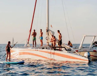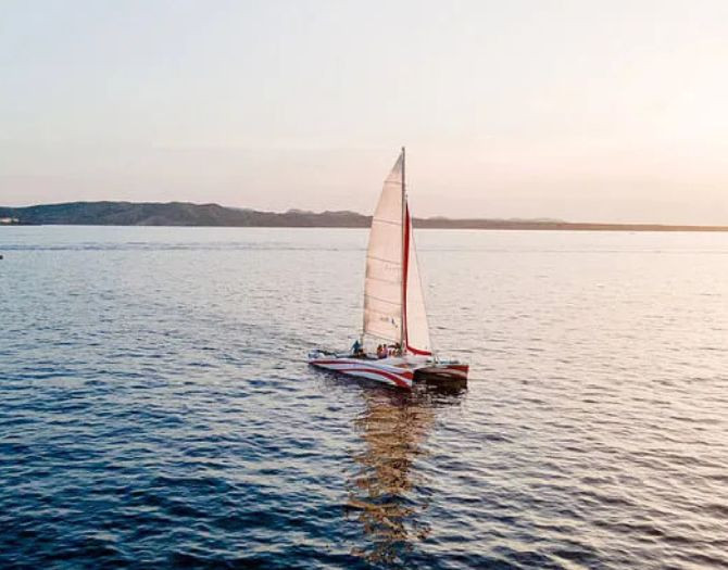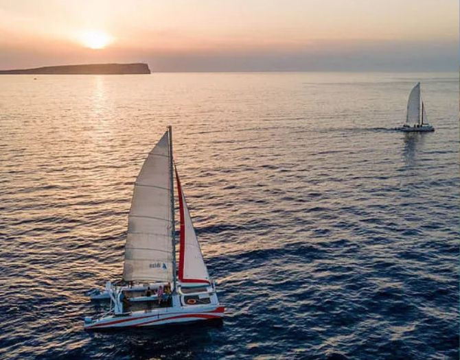 Navegación al atardecer en catamarán exclusivo, sin motor y en grupos reducidos