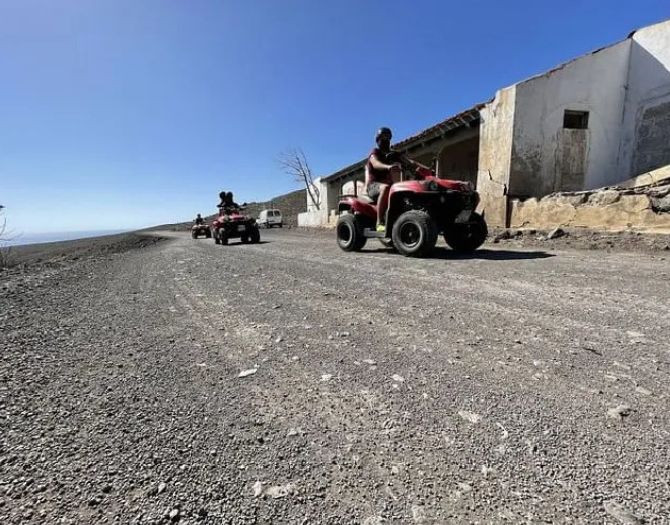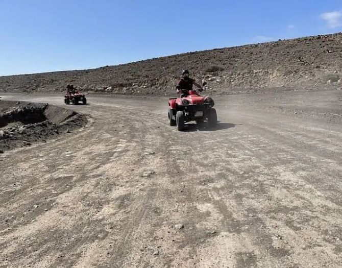 Comenzamos con una clase teórica donde aprenderás a conducir el quad de forma segura. Te proporcionaremos gafas antipolvo y casco. Luego salimos desde el Puerto de Morro Jable rumbo al Parque Natural de Jandía, atravesando caminos con vistas espectaculares y fauna local. El recorrido termina en El Puertito, un pintoresco pueblo costero lleno de historia.