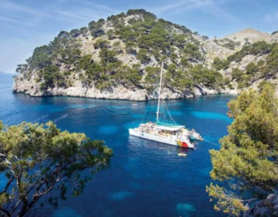 The experience begins at Puerto de Alcudia, where you'll board a spacious sailing catamaran. We’ll head to hidden coves like Coll Baix and calm spots in Pollensa Bay, stopping for swimming in crystal-clear waters, kayaking, paddle surfing, or just sunbathing on deck.