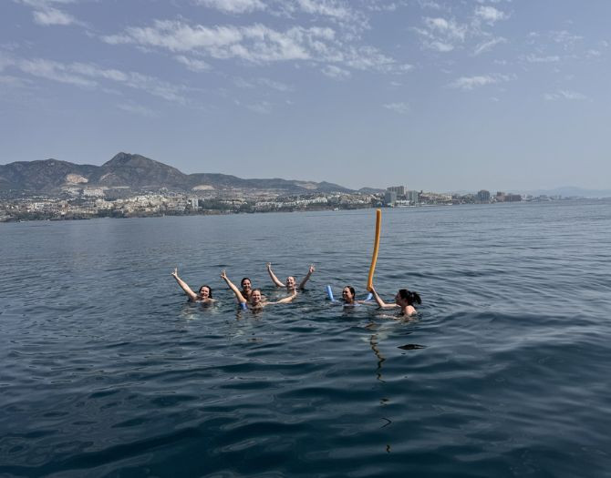 Because it’s an exclusive, stress-free way to enjoy the sea with friends, family, or your partner. This private boat tour in Benalmádena – 2 hours comes with everything included: a skipper, crew, unlimited drinks, and aquatic activities in a spectacular natural setting. Just relax and enjoy.