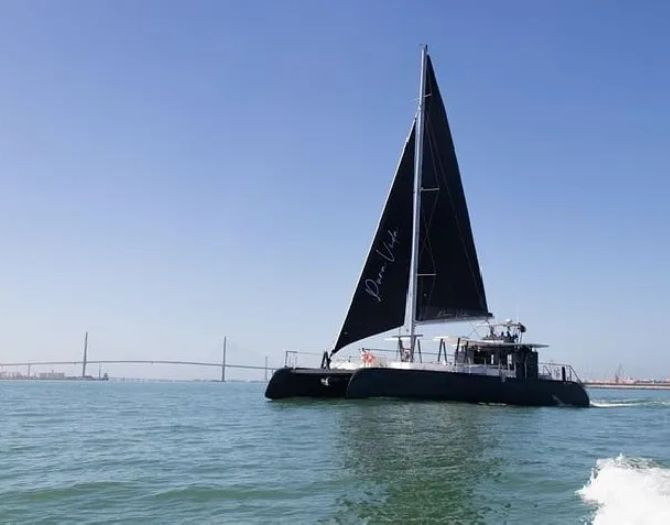 The Catamaran Tour in Cádiz with swimming stop begins at the Port of Cádiz, where you’ll board and set sail across the bay while enjoying spectacular coastal views.