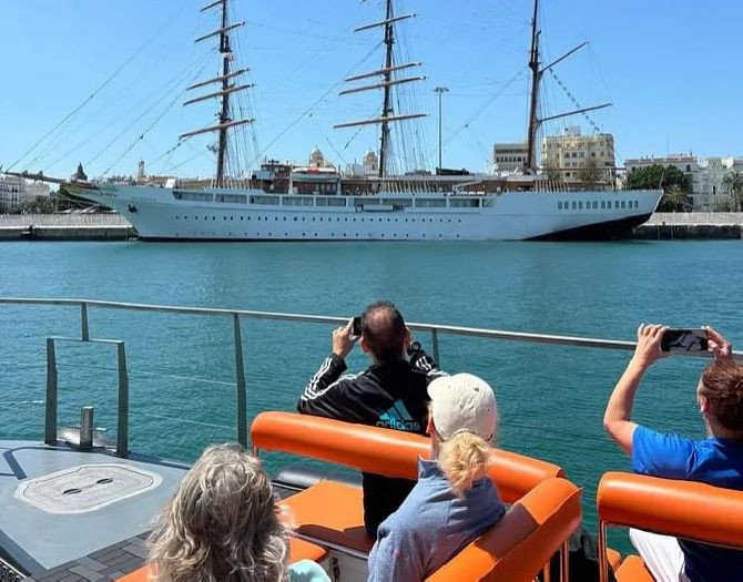 📍 Boarding point: Port of Cádiz, entrance through Plaza de Sevilla (in front of the Congress Palace)