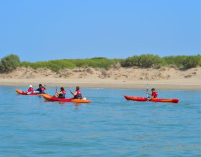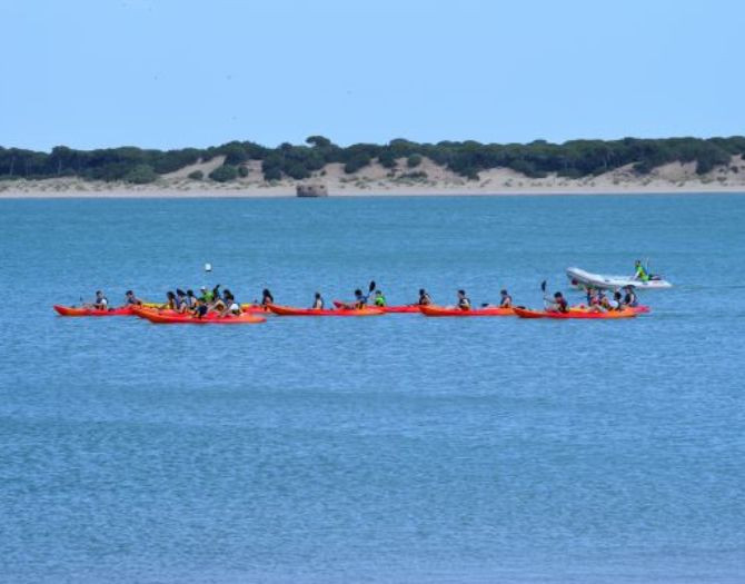 Starting from the historic area of "La Plancha", the journey takes you past pine forests, salt marshes, and untouched beaches near Doñana Natural Park. With a bit of luck, you might spot birds, deer, or wild boar. To top it off, one part of the journey (outbound or return) is done by motorized boat, so you only paddle one way.