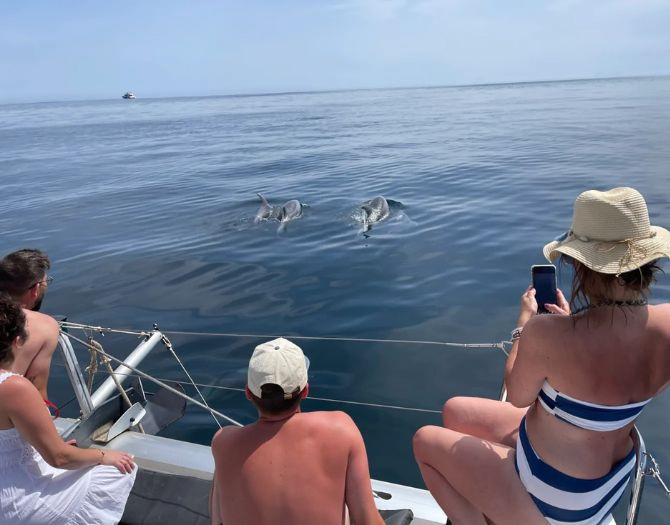 This is a 2-hour catamaran excursion departing daily from Puerto Marina in Benalmádena. You’ll have an 80% chance of spotting dolphins up close, all while enjoying a comfortable cruise. The experience includes complimentary drinks (water, soft drinks, beer, cava), paddle surf, snorkeling gear, fishing rods, Wi-Fi, and Bluetooth music on board. All guided by a professional captain and crew.