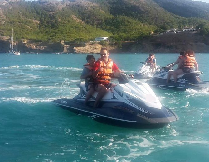 Hemos pasado casi dos horitas en motos de agua con el simpático de ALEX, os lo recomendamos!!! La verdad es que nunca había subido en moto de agua, se pasa un ratín complicado pero gracias a la seguridad que te aporta el guía se hace más ameno.