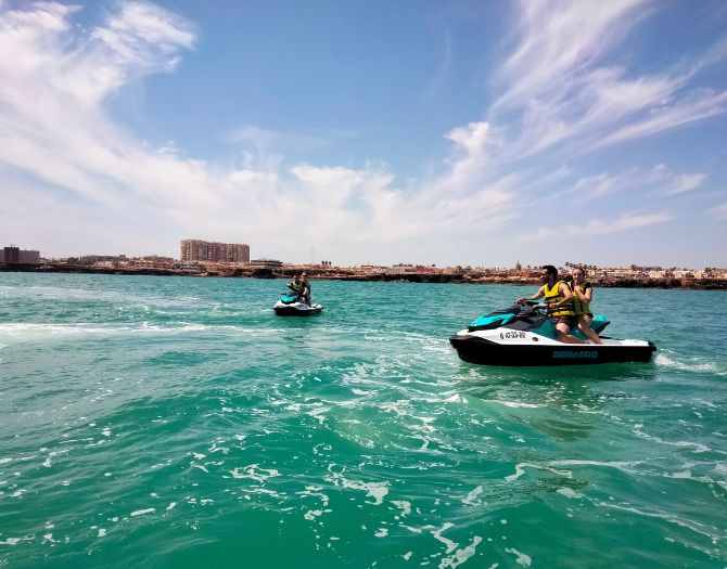 If you want to visit Tabarca and circle it on a jet ski, if you want to discover the geological whimsy of La Manga del Mar Menor, don't hesitate any longer and get yourself this jet ski tour to Tabarca from Torrevieja, on this same tour we will go by jet ski to La Manga del Mar Menor from Torrevieja (Alicante).