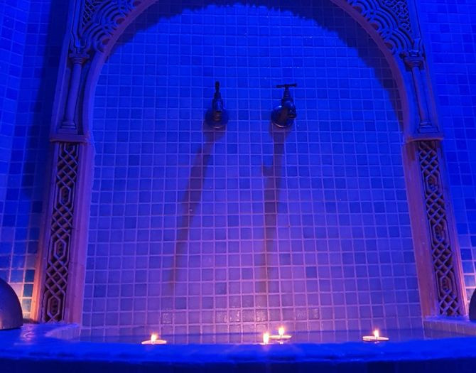 The ritual begins with a steam bath to open the pores and prepare the skin. Then, savon Beldi is applied—a Moroccan black soap made from olive oil, perfect for exfoliating and nourishing. This is followed by the gommage, a full-body exfoliation, and a foamy wash that leaves your skin soft and purified. You'll also enjoy a facial massage with almond and bergamot oil, and a mousse savonnage: a gentle foam wrap with marine water. The circuit ends in the relaxation area with traditional mint tea or fresh orange juice.