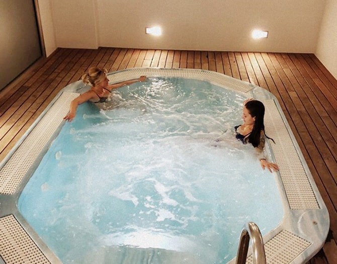 Wearing a swim cap, flip-flops, towel, and swimsuit is mandatory. If you do not have them, you can purchase them at the spa