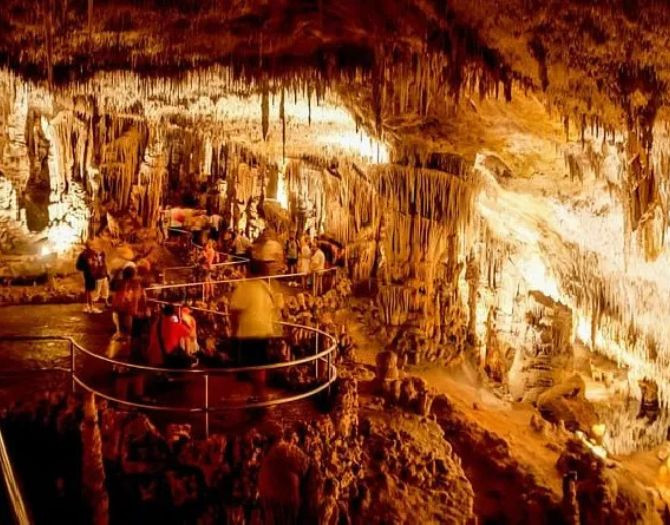 Visitaremos las impresionantes Cuevas del Drach, formadas por cuatro galerías conectadas que esconden en su interior el famoso Lago Martel, uno de los mayores lagos subterráneos del mundo.